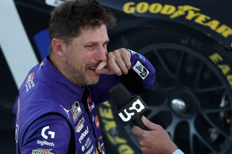 Denny Hamlin se emocionou com vitória em Las Vegas. Foto: Nascar